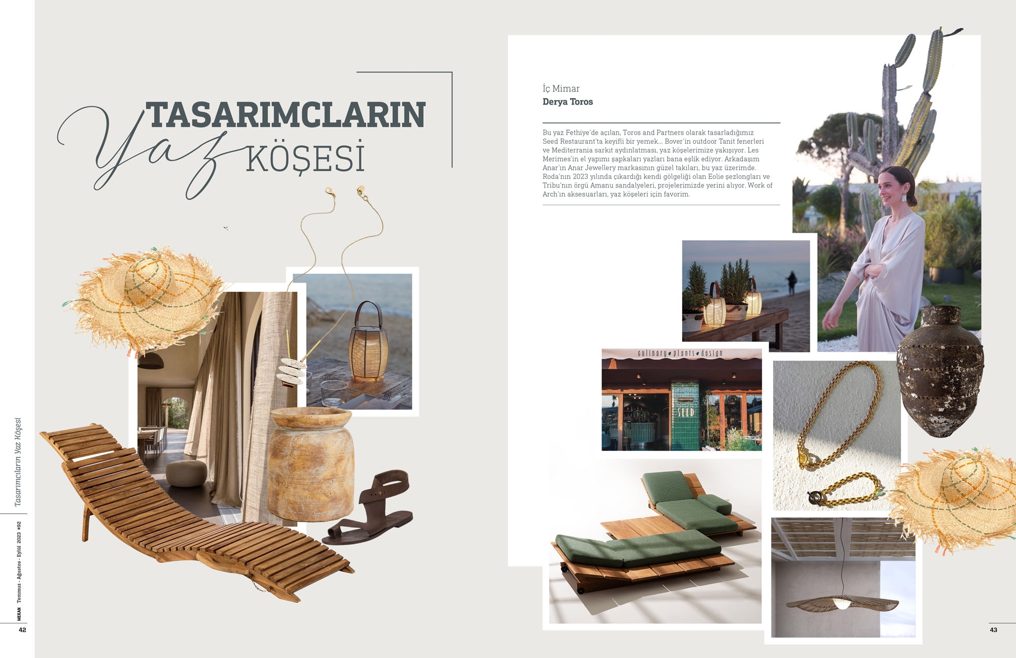 In her latest interview for Mekan Magazine’s 92nd issue, Derya Toros shared her favorite summer projects. From the Seed Restaurant in Fethiye to the serene Paloma Finesse in Antalya, each project beautifully blends nature with elegance, combining outdoor design with modern luxury. Toros and Partners continues to create spaces that capture the essence of relaxation and beauty.