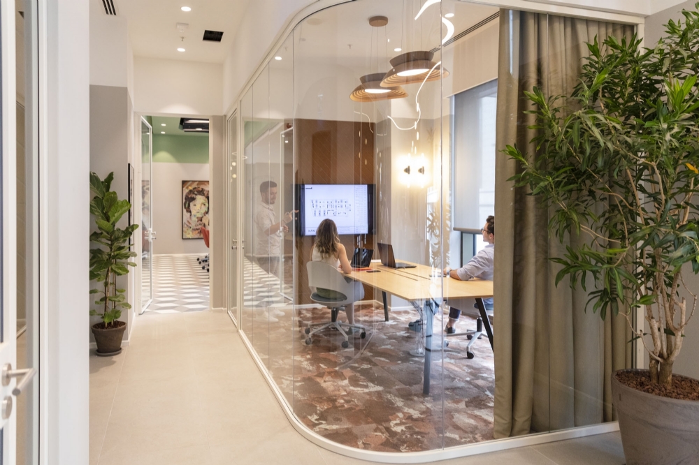 Acoustic comfort was a key design criterion throughout the project. Through collaboration with Feltouch, acoustic solutions were implemented to optimize sound control, ensuring a calm and productive atmosphere within the shared office environment.