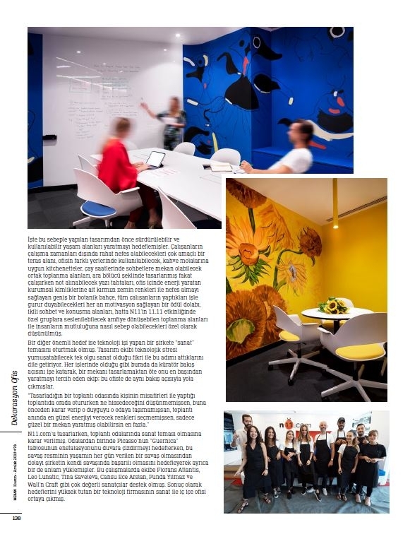Blending comfort, psychology, and creativity, Toros and Partners transformed the N11.com office into a vibrant, flexible workspace. With art-infused meeting rooms and a playful atmosphere, this project emphasizes the synergy between design, technology, and employee well-being. For more detailed information, be sure to check out Art’ı Mekan Magazine’s 78th issue.