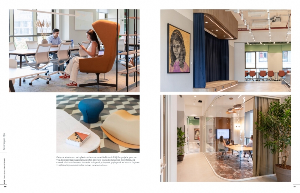 In the 90th issue of Art’ı Mekan Magazine, Toros and Partners discussed their design for Han Spaces, a five-story coworking office located in Piyalepaşa. Designed with a young, energetic, and dynamic spirit, the space emphasizes a design approach that connects with emotions, using color strategically to enhance mood and work motivation. For more details, check out the full article in the latest issue.